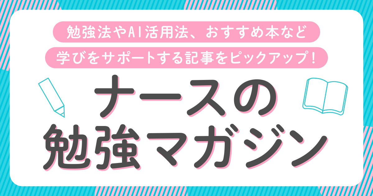 この春新人ナースとなる方や、先輩としてしっかり学び直しをしたいと考えている方へ。エキナスwebで読める、「勉強」に関連した記事をピックアップしました。おすすめの本や、確認テスト、生成AIの活用ポイントなど、役立つ記事が満載です! 勉強のための本選びに迷っているなら 「勉強会担当になった」というナースにおすすめの本を紹介 本が大好きな看護師のおともさんが、“あなた”に寄り添った本を紹介するブックセラピー企画。「勉強会担当になった」というナースにおすすめの、資料づくりやプレゼンの基礎を学べる本がラインアップしています。 「ブランクがあっても大丈夫」病院外で働く看護師の学び直しを支える本 お悩みを寄せたのは、ブランクがある施設看護師さん。特に急変対応やフィジカルアセスメントについて学び直したいときにおすすめの本がそろっています。 「文字ばかりの本は苦手」そんな中堅ナースのためのビジュアルで学ぶ看護書 文字ばかりの本は苦手……という中堅ナース向けに、イラストや図解などが多く、応用も充実している本をチョイス。後輩も増え、自身のスキルアップも意識し始めたという方は注目です。 【2025年】看護書ランキングTOP5:臨床現場で「本当に役立つ」1冊 2025年、看護師から人気を集めた照林社の書籍トップ5〈臨床編〉をご紹介。どの本を買おうか迷っている人はチェックを。 【2025年】看護師向けポケットサイズ書籍ランキングTOP5 こちらは〈ポケットサイズ本〉のご紹介。コンパクトなサイズで手軽に持ち歩ける、心強い味方です。 若手ナースの勉強スタイルを参考にするなら 先輩ナースがすごい!と思った新人ナースの勉強法 「ほかの新人と違うな」「自分にはできない!」と、先輩ナースが思わず感心した・驚いたエピソードを集めました。この春、新人ナースになった皆さんも、自分に合いそうな勉強法を試してみて。 業務時間外の勉強、どう思う? 業務時間内に勉強ができれば理想的ですが、なかなか難しいもの。Z世代ナース、先輩ナースの皆さんは業務時間外の勉強について、どう思っているのでしょうか。 身についた知識をチェックするなら 看護師のための知識チェックテスト エキナス2025年6月号特集「学び直し+実践力アップ 看護に必要な知識の総復習」に連動したWeb確認テストです。苦手分野の把握や復職前の総点検にもおすすめ!クイズ感覚でチャレンジしてみましょう! 生成AIを勉強に活かすなら 生成AIで何ができる?メール・レポート・要約など役立つ活用術 勉強にも生成AIを活用したいという方もいるのでは? メールやレポートの作成、企画のアイデア出し、要約・翻訳など、生成AIにできることをまとめています。 看護記録作成、文献検索を効率化!看護現場で役立つ生成AI活用法 生成AIは看護現場で具体的にどう役立つ?看護記録・サマリー作成、文献検索、情報収集を効率化するために知っておきたいポイントが学べます。 生成AIを使いこなすために重要な「プロンプト」とは? 生成AIを使いこなすには、質の高いプロンプト作成が重要です。看護記録をSOAP形式にまとめる具体例を取り上げながら、プロンプトを作るコツを紹介しています。 雑誌『エキスパートナース』2026年4月号では、特集「「勉強して」って言えない先輩へ “押しつけない勉強”のはじめかた」をお届けします。ぜひ併せてご覧ください!詳細はこちら