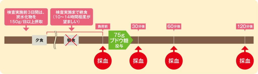 炭水化物の摂取が少ない状態では、糖尿病がなくても耐糖能が低下すると言われています。そのため、炭水化物を適量摂取することは、正確な検査結果を得るための必要な条件です。