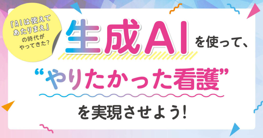 業務中に「もっと効率よく仕事ができたら」「患者さんともっと向き合う時間がほしい」などと願うことも多いのではないでしょうか? 医療・看護の分野でも生成AIが、私たちの働き方をサポートする形で導入される可能性が十分にあります。“自分のしたい看護を叶えるため”に、「生成AIのうまい使い方」を今からしっかり学んでおきましょう。
