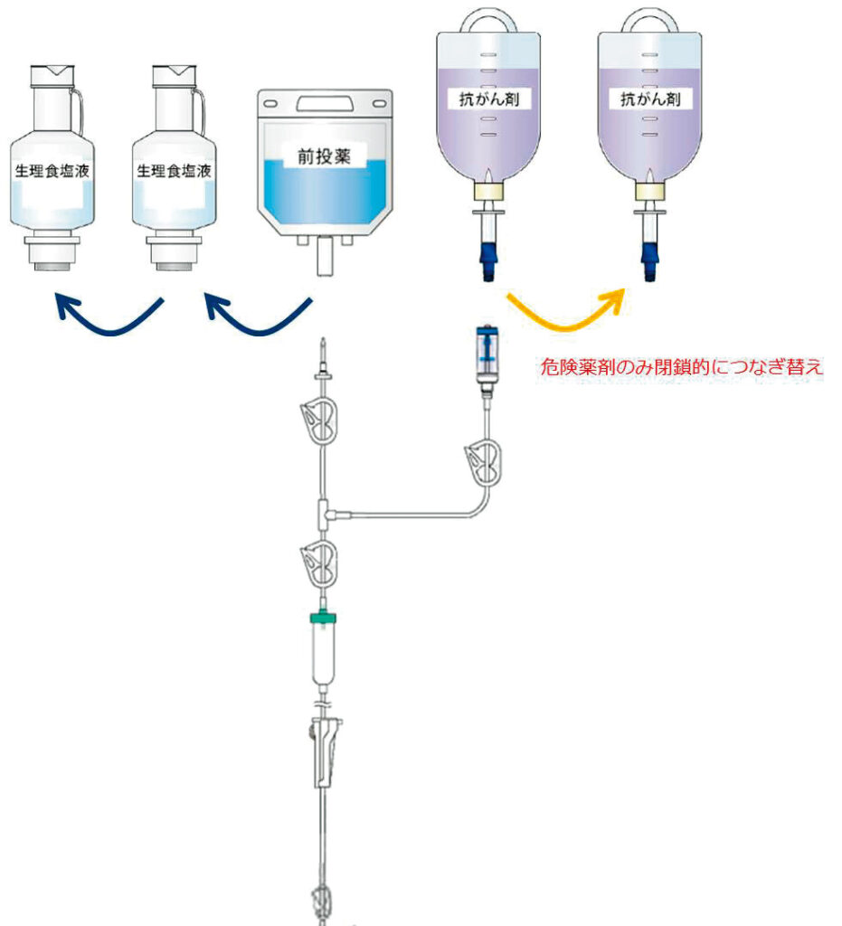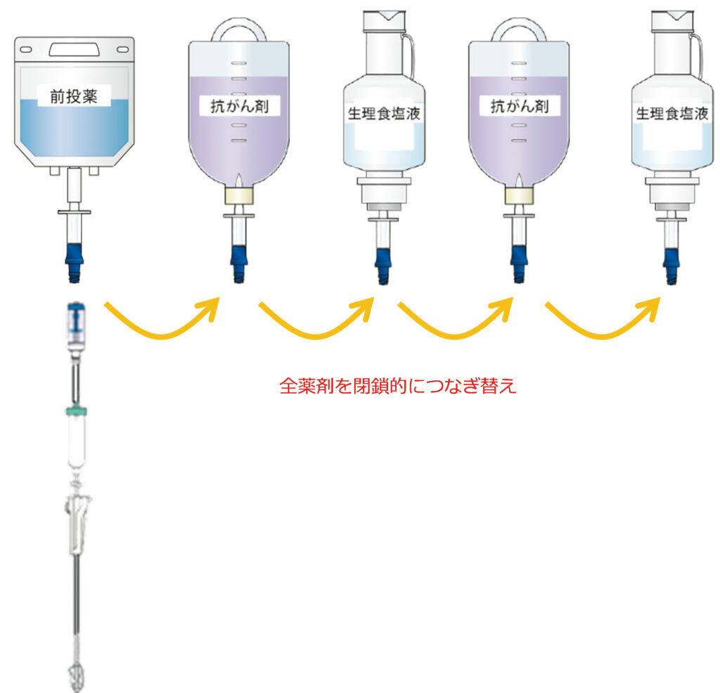 ●メインルートのみで抗がん薬を投与している施設向けに、レジメンに変更なく曝露対策ができるタイプもラインナップされている
