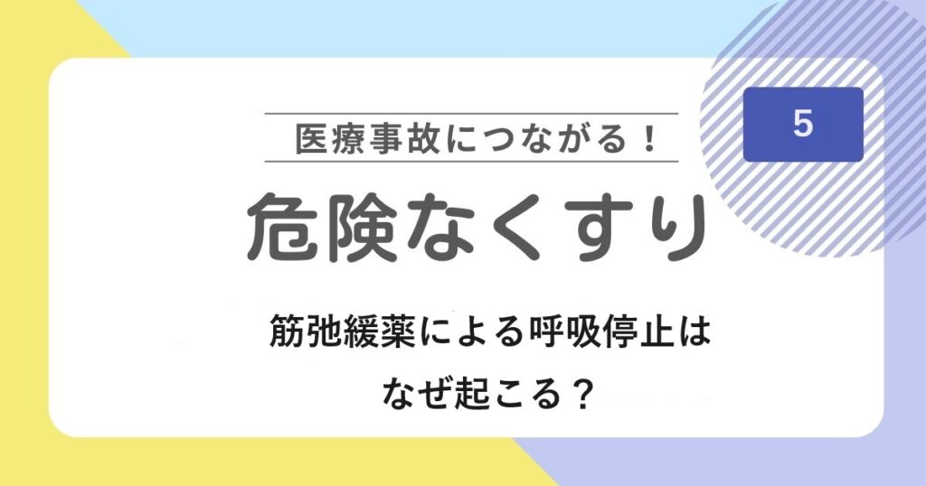 医療事故につながる可能性のある危険な薬に注意!今回はハイリスク薬の1つである筋弛緩薬(筋弛緩剤)を取り上げます。筋弛緩薬による呼吸停止はなぜ起こる?理由や注意点、正しい使い方を解説します。